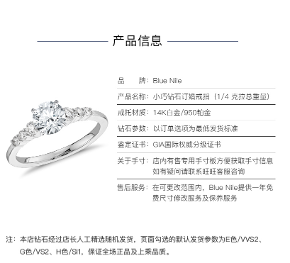 【Blue Nile】小巧钻石订婚戒指副钻总重23分求婚结婚钻戒定制无荧光